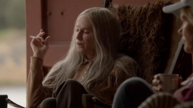 Jane: HOLLY HUNTER, WHAT IS HAPPENING? Campion, for me, is one of those directors that can move from subtle to being utterly on the nose, and I think Hunter’s character is currently leaning toward the latter. Is it her long, gray (barely-masked wig of) hair? Is it how she’s always smoking a cigarette? Maybe it’s the outfit and Hunter’s delivery that makes G.J. look like she just came out of a 1950s Western. She speaks in these seer-like aphorisms that aren’t just predictive, but sound almost like threats. Is she mystical, omniscient, telepathic? I don’t know whether to feel safe in her presence, or giggle (if a bit nervously).