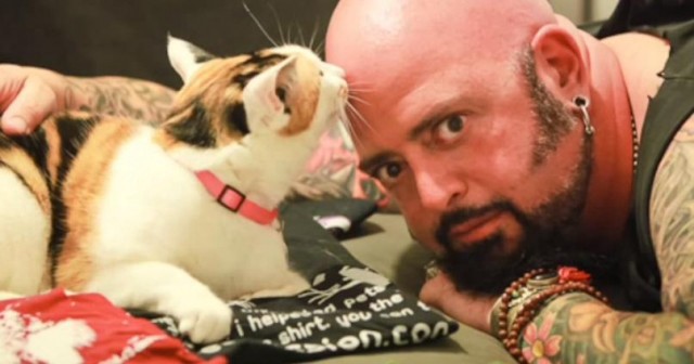It’s not uncommon to see Jackson Galaxy get choked up on his show, or get down on the floor and take his glasses off so he can get eye to eye with a cat. (Pro tip: The earpieces of your glasses have your scent on them, so they can be used as a way to introduce yourself without being too intrusive.) Sure, it would be great to get past a world where it’s not important for heterosexual men to be reassured of their masculinity despite their love of cats — or have it associated with any sort of gendered behavior or sexual preference — but in the meantime, here’s a bearish tattooed guy who loves little kitties.