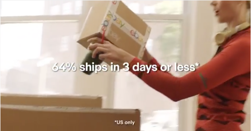 Another great thing about this ad is how the title card makes it look like a cool branding collab between Karlie and eBay, like Outdoor Voices x Glossier or Chance the Rapper x H&M x Kenzo; you know that because of the sans serif font and the x meaning cross like between but also cool: