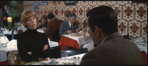 The schlubby Pete (Walter Matthau) and the tamped-down Tillie (Carol Burnett, brilliantly cast against type) meet at a party at the Bay Area home of Tillie’s matchmaking best friend, Gertrude, who is on the knifepoint between studied good grace and natural-born vulgarity as only Geraldine Page could have played it. Tillie is a secretary; Pete is in “motivational research,” which means that he’s all about the sell and always has a line ready. In front of Gertrude’s guests, who include her priest, Pete tells her, “I didn’t know you were asking Father Keating. I demand equal time for my rabbi.” When Gertrude asks why he identifies as a Jew when he’s three-quarters Lutheran, Pete says, “Because I’m a social climber.”